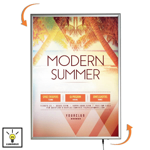 Idéal pour points de vente, halls d’accueil, salons ou espaces commerciaux, ce cadre lumineux attire l’œil et met en valeur vos informations, même dans des environnements peu éclairés.