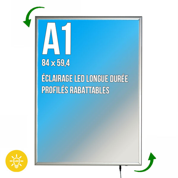 Le cadre rétro-éclairé au format A1 est conçu pour présenter vos affiches de manière lumineuse, moderne et professionnelle. Son design slim de 25 mm apporte une finition élégante et discrète, tout en garantissant une excellente visibilité de vos visuels.