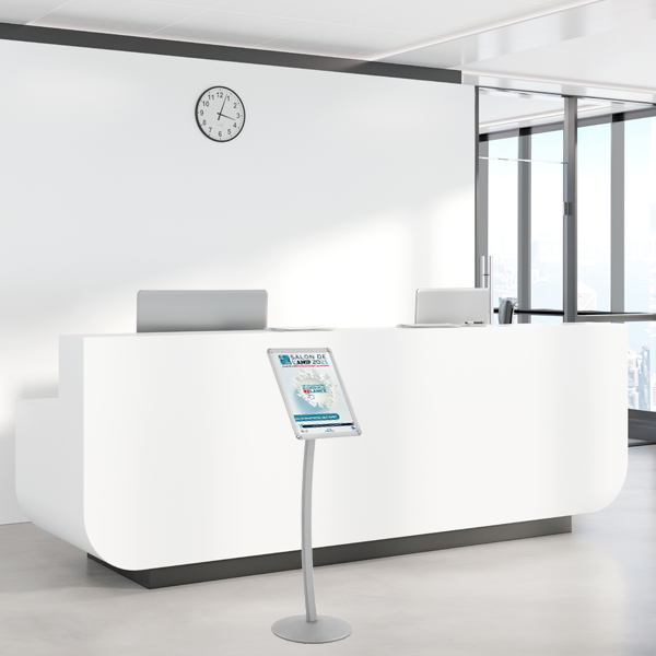 Idéal pour les comptoirs, accueils, points de vente ou espaces professionnels, il permet de mettre en avant vos informations de façon visible et accessible. Son design élégant, stable et sa finition alu ou noir mat attirent naturellement le regard et valorisent vos supports.