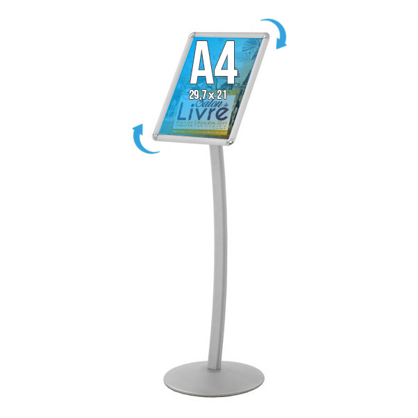 - Porte-affiches Cadro-Clic à profilés rabattables, ouverture faciale, protecteur plexiglass antireflets, inclinaison à 45°, angles arrondis.
