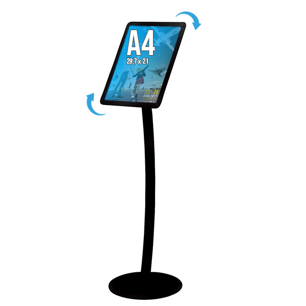 Idéal pour les comptoirs, accueils, points de vente ou espaces professionnels, il permet de mettre en avant vos informations de façon visible et accessible. Son design élégant, stable et sa finition alu ou noir mat attirent naturellement le regard et valorisent vos supports.
