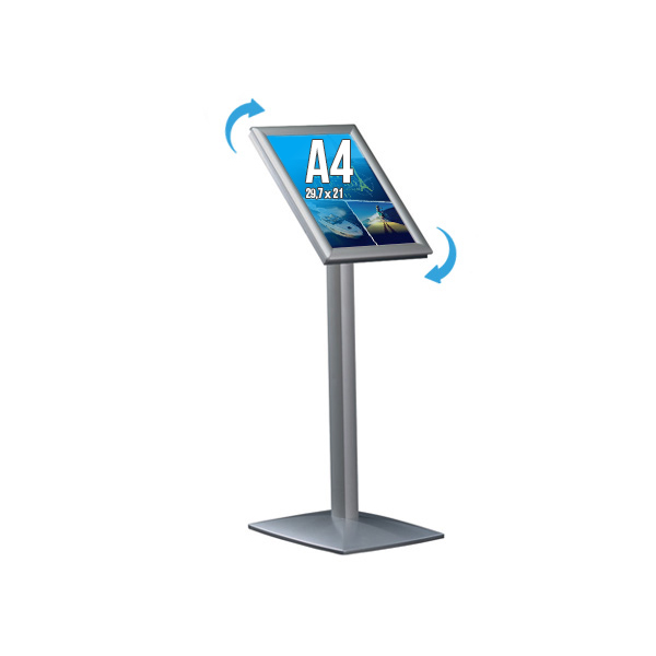 Grâce à son système télescopique, il permet d’ajuster la hauteur selon vos besoins, offrant ainsi une flexibilité d’utilisation et un confort de lecture optimal. Son inclinaison améliore la visibilité et capte plus facilement l’attention dans les zones de passage.